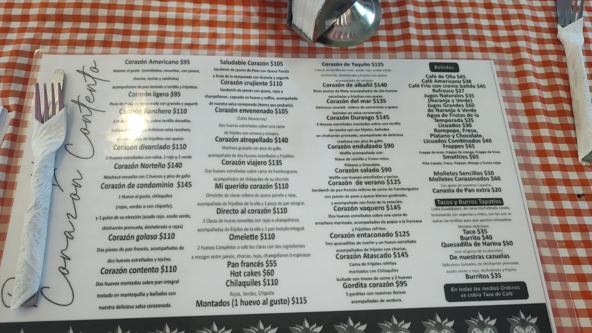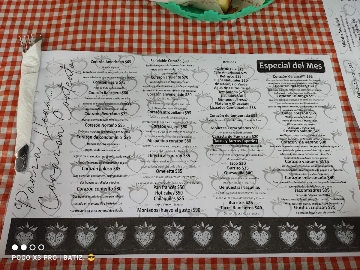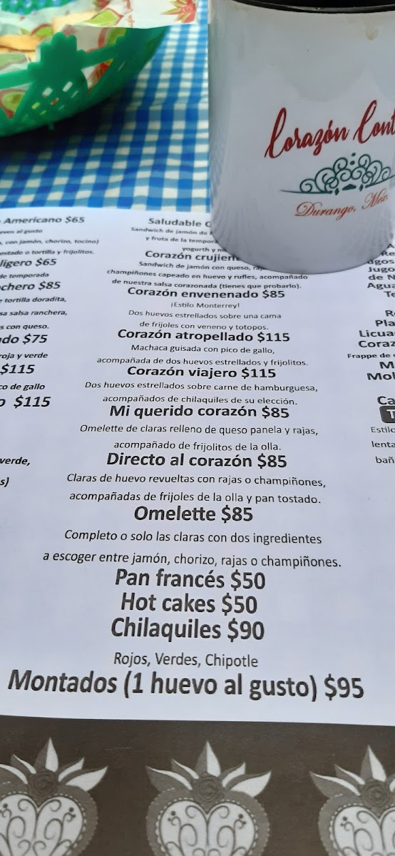 Introducing Corazon Contento, a vibrant culinary gem located at Av. Durango 174 in Durango, Mexico. This trendy eatery shines as a breakfast hotspot, attracting food lovers with its inviting atmosphere and delectable dishes.